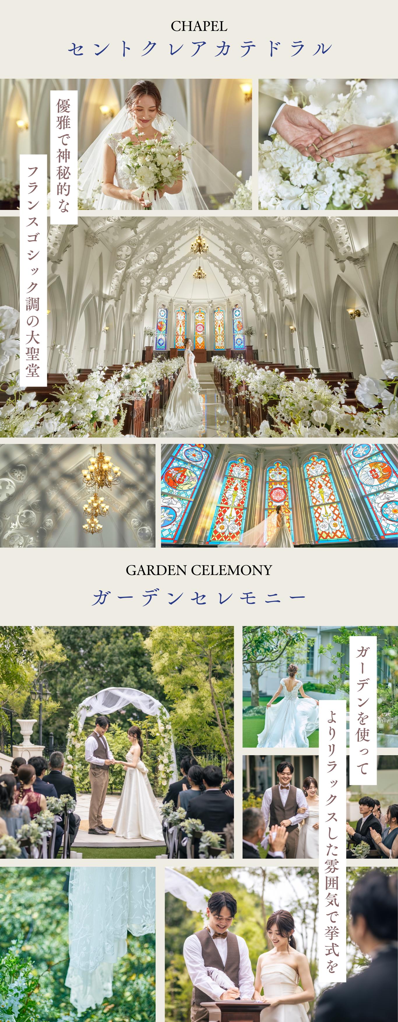 また、ガーデンを使ったガーデンウェディングスタイルも人気。選べる挙式を楽しんで。